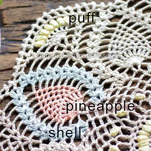 This is the puff stitch or hdc5tog that I used for this pineapple doily. It is one of the variations in puff stitch as one might do it differently.