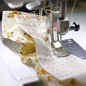 Stitch to join up the fabric strips to make up the needed width for each tier.
