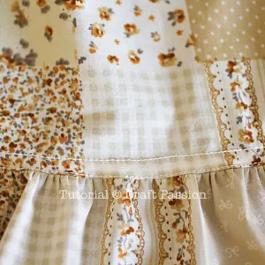 For this 3 tiered skirt, I used a gathering presser foot to gather the fabric which is faster than the manual gathering method. If you haven’t used a gathering foot to gather fabric, there is a video at the pattern section to show you how to do it. The total time I’ve spent to sew this 3 tiered skirt is about 2 hours. If you do not have a gathering presser foot for your sewing machine you can still do the fabric gathering manually, refer to the ruffles skirt tutorial where I did the gathering manually.