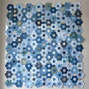 This is the piece of the hexagon quilt of about 54″ x 58″, 143 hexagons flower blocks + 142 hexagons = total 1,143 hexagons. It is the hexagon quilt cover I sewed for my daughter by using the 2-inch hexagon template, click here for the tutorial.