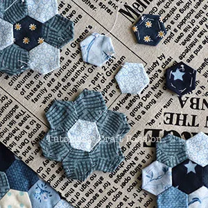 This is the 4″ diameter hexagon flower coaster by using the 1.5-inch hexagon template. Just line them with a piece of felt fabric.