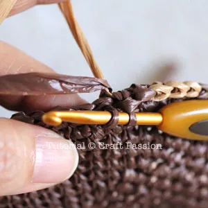 Set iron to medium and press the raffia bucket bag with the warm iron (Only do this if you are using the same raffia as mine, please test on a small surface if you are using other raffia yarn.). This is to block and set the stitches of the raffia bucket bag in shape. You may block the base before working the body, but if you have missed that, just pad your fist with thick socks or fabric, insert your fist into the bucket bag, and press the base against the iron.