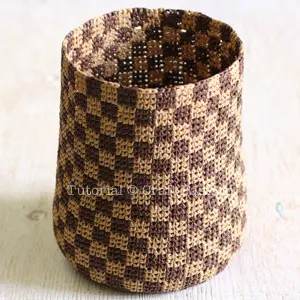 Repeat Round 18 to 23 until round 52 or until the vertical height measure around 6″. Continue to work on the checkerboard pattern for the bag body for the following instruction.