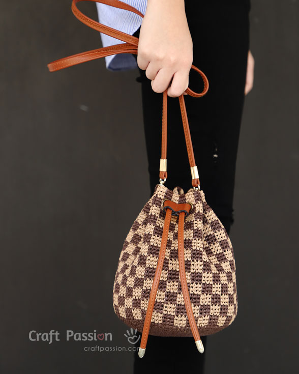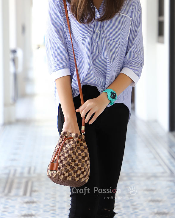 This stylish crochet bucket bag is lightweight and handy when you don’t feel like bringing a big purse out. The leather drawstring and straps perfected the raffia bucket bag by adding bits of luxury touch, making it look like those just came out from the branded luxury designer shops. The best part is that you can make this raffia crochet bucket bag with my free pattern that won’t burn a hole in your pocket.