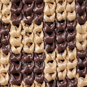 With Chocolate (C) and Kraft (K) Raffia to make a checkerboard pattern of 3 sts x 3 rows size for each color.