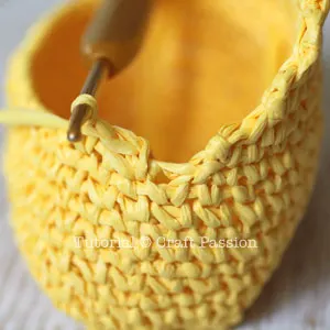 Since raffia yarn is not as flexible as the normal yarn, single crochet with raffia tends to create holes between stitches.