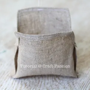 Set iron on medium heat. Block the coin purse by pressing it against a ball of socks (insert into the purse). If you are using other brands of raffia yarn, test the iron on a small part inside the purse.