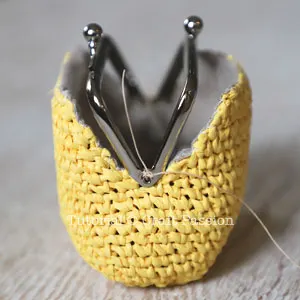 Repeat the sewing to the other side of the kisslock frame to complete the raffia coin purse.