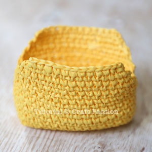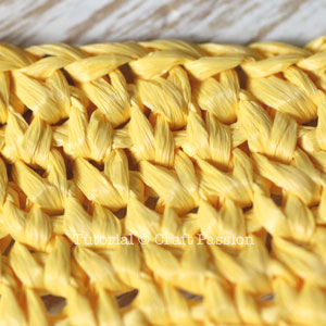 With Yellow raffia yarn and a 2.5mm hook