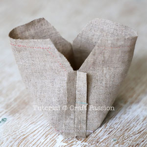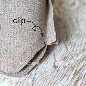 Make a small snip at the seam allowance as shown in the picture. Fold along the seam lines and sew around the top edge of the lining.