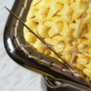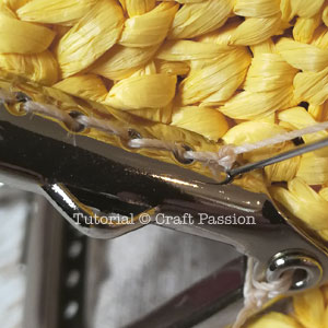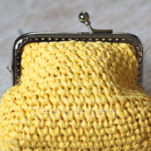 Repeat the sewing to the other side of the kisslock frame to complete the raffia coin purse.