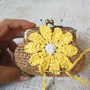 Either leave it plain or decorate it with a big yellow daisy flower to spice up the raffia coin purse, you decide.