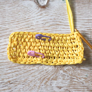 After the base of the raffia coin purse is done, crochet a round of ssc around the base.