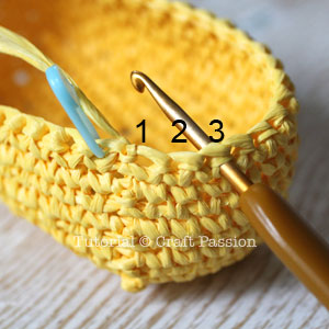 Since raffia yarn is not as flexible as the normal yarn, single crochet with raffia tends to create holes between stitches.