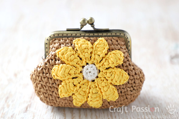 Or, crochet the raffia coin purse into 2 colors and lightly dress it up with a small daisy flower, what do you think?