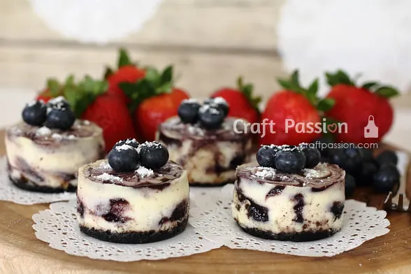 Swirling fresh blueberry puree into sour cream cheesecake batter to create the aesthetic marbling effect is both therapeutic and satisfying — but what’s more delightful is sinking your teeth into the light yet rich mini blueberry cheesecake that tickles the palates of cheesecake lovers and blueberry enthusiasts alike.