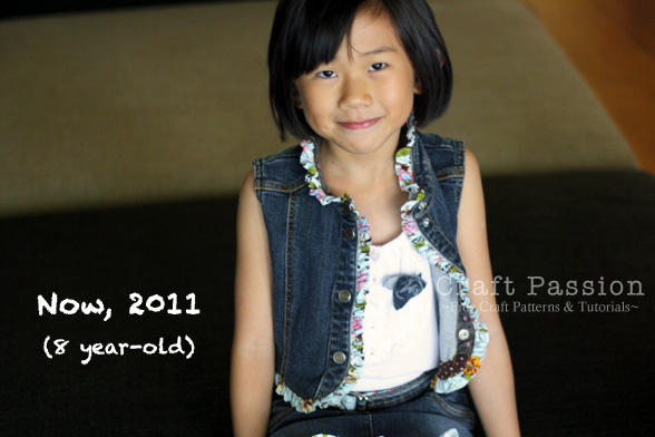 Here she is, 8, wearing her modified 4 years old clothing. Amazing?