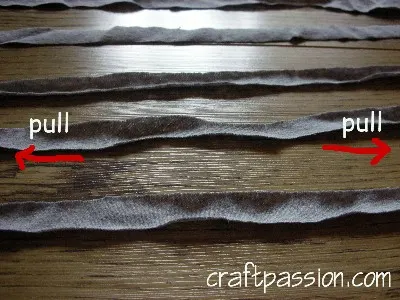 - Next is to turn the strip into a tubular yarn. All you need to do is tug the strip as shown below. Remember I told you that the minimum width of the strip is 15mm? The secret is…. if you have anything narrower than this, it will break once you pull.