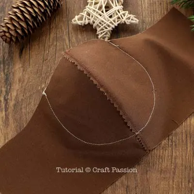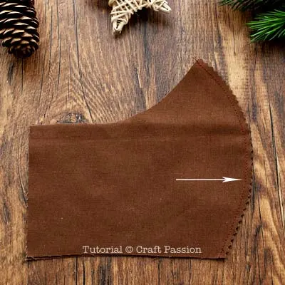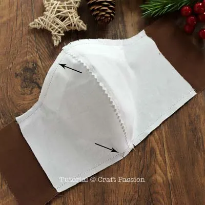 For 3 layers of Reindeer Face Mask, trim out the Front piece (Brown fabric) by carefully cutting 1/4" from the sewing lines.