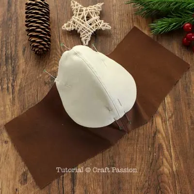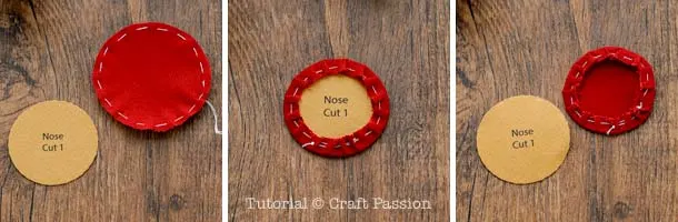 After tracing and cut out the Nose piece from the fabric, sew around the edge with running stitches.