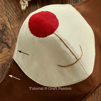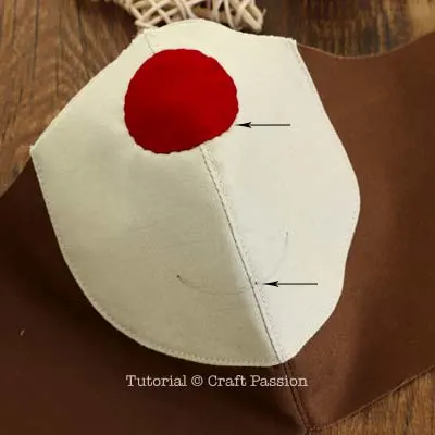 5. Sew Muzzle piece then place it to the front of the Reindeer Face Mask. Aligned them, pin and topstitch near the edges of the Muzzle to attach it onto the face mask.