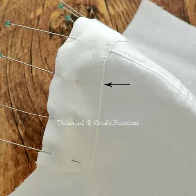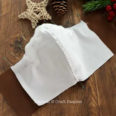 Place both pieces right side together, align, pin and sew the bottom edges together. Clip the seam allowance with pinking shear or scissors.