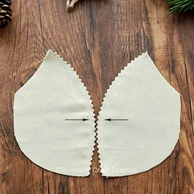 Place the 2 sets of Muzzle pieces right side together, sew the center seam then clip the seam allowance with pinking shear or scissors.