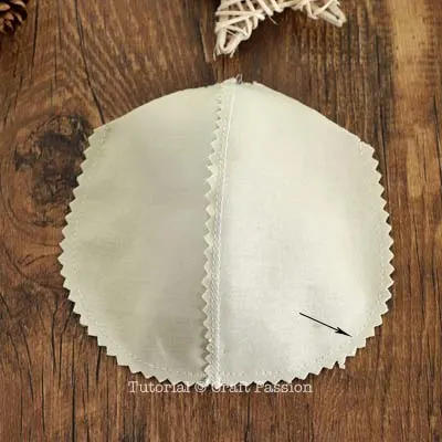 Clip the seam allowance by making small little cuts about 1/2" apart for the top edge. Clip about 4 cuts at the bottom near the center seam.