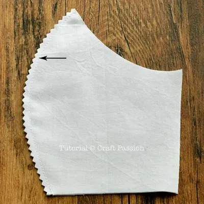 3. Sew the Face Mask with quarter inch seam allowance as instructed, with matching color thread. Clip curve on the arched seam allowance or trim the seam allowance with a pair of pinking shears.