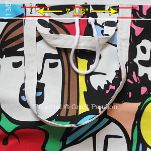 Note that the top seam allowance of the bag is 1 3/8″. This thick seam allowance will help to make the top edge of the tote firmer.