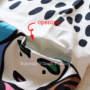 - Align, pin and sew the top seam line, leaving a 5″ opening for turning right side out.
