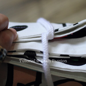 Cross the cotton cords on the top with 1 cord to the back and 1 cord to the front.