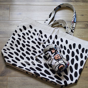 This jumbo reversible tote bag not only has 2 different designs for you to choose from, but it also has 2 sets of handles, long handles for shoulder and short handles for hand. Now, you can choose how you want to style the bag, a black & white or a colorful “face bag”, on the shoulder or on hand. When not in use, you may roll it up and keep inside your handbag or any convenient place for you to grab and go….. go shopping!!!!