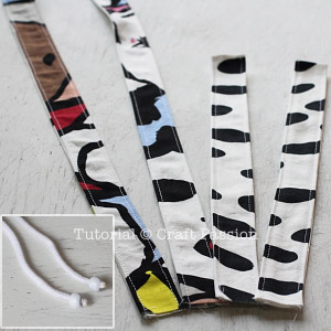 - Place the pairing handle pieces right side together and sew the long seams with 1/4″ seam allowance. Turn, press and topstitch 1/8″ from the edge.
