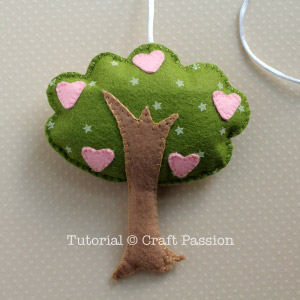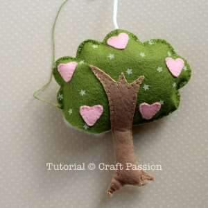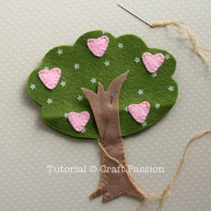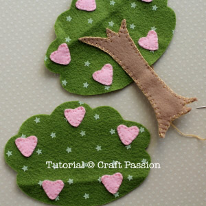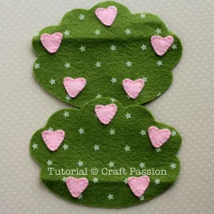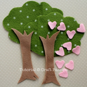 1. Cut felt on the tree template, tree/crown, trunk, and small hearts.
