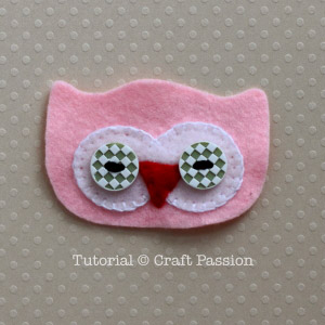 2. Layer the white felt eye above one of the pink face pieces, blanket stitch to secure in place.