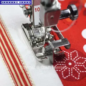 a. When reaching the cutlery marking, sew across the ribbon and go to the other side of the ribbon, continue sewing to the starting point.