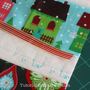 · 2 White fabrics, 18 1/2″ x 4 1/2″ each, fold the pieces into half along the long length. (Tip: this will give 2 layers on the white part to make the white really “white”.)