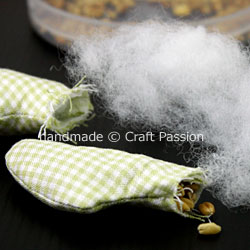 - To make the turtle heavier on the back flippers, put in some beans (or stuffing pallets) to the back flippers. Cover it with poly-fill at the opening.