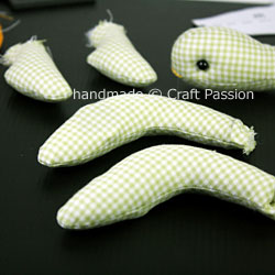 Stuff all parts except the tail with poly-fill stuffing materials.