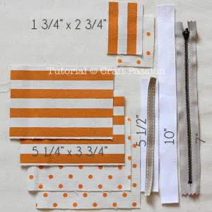 All you need to prepare for sewing this zipper pouch are some fabrics, a zipper, twill tape, and ribbon. We used canvas fabric as the pouch external and cotton fabric for the internal lining. The zipper length is 7″ and since we used a metal zipper, we need to trim the length from a standard 8″ zipper. If you are using a nylon or plastic zipper, just need to cut the zipper to 7″. A short length of ribbon is used to create a divider within the pouch, that’s to add more compartment sections. The twill tape is to bind and hide away to the raw seam allowance.