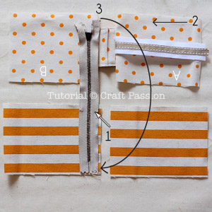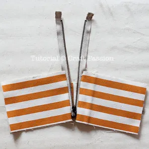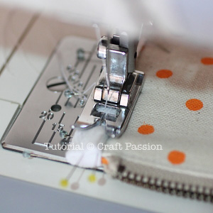 - Repeat the sewing steps to the other side. Adjust the zippers by pulling up and down if required so that the zipper don’t get in the way of your zipper foot during sewing.