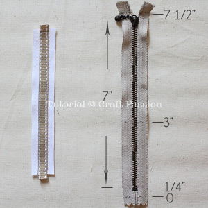 Mark 7″ zipper according to the measurement of 0, 1/4″, 3″ and 7 1/2″. (Right)