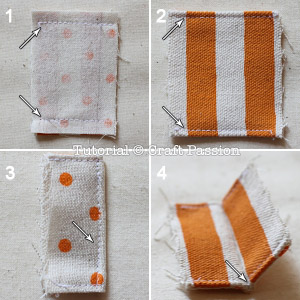 1. Place canvas and polka-dot right side facing each other. Sew top and bottom.