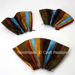 Run stitch near the edge, tug to gather the fabric to about 1″ wide.