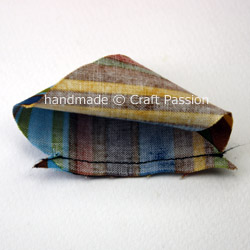 Align the slant edge of the mouth fabric, in a right angle to each other, and sew with 1/4″ seam allowance.