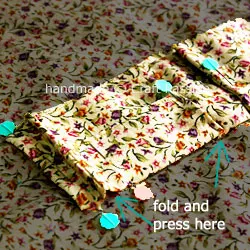 b. Fold the pocket along the card compartment's stitching line, tucks or pleats of ¼" depth were made at each stitched side and middle, making two pleats per pocket. Press to set the crease.