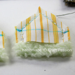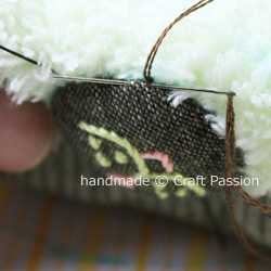 Now, sew the blot patch on the kitty’s face. Slip stitch it then sew a line of running stitch on the surface about 2mm from the border.