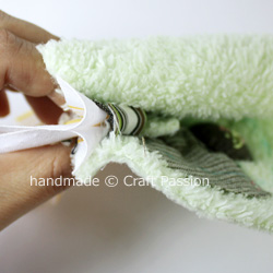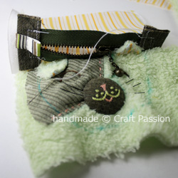 Sew a line across the inter lining and zipper. If you are not using polar fleece but thinner material like cotton fabric, you can press the outer fabric together.