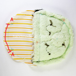 Sew a line from A to A and leave a space of about 2 ” at the inner lining. We are using this opening to turn the purse inside out.